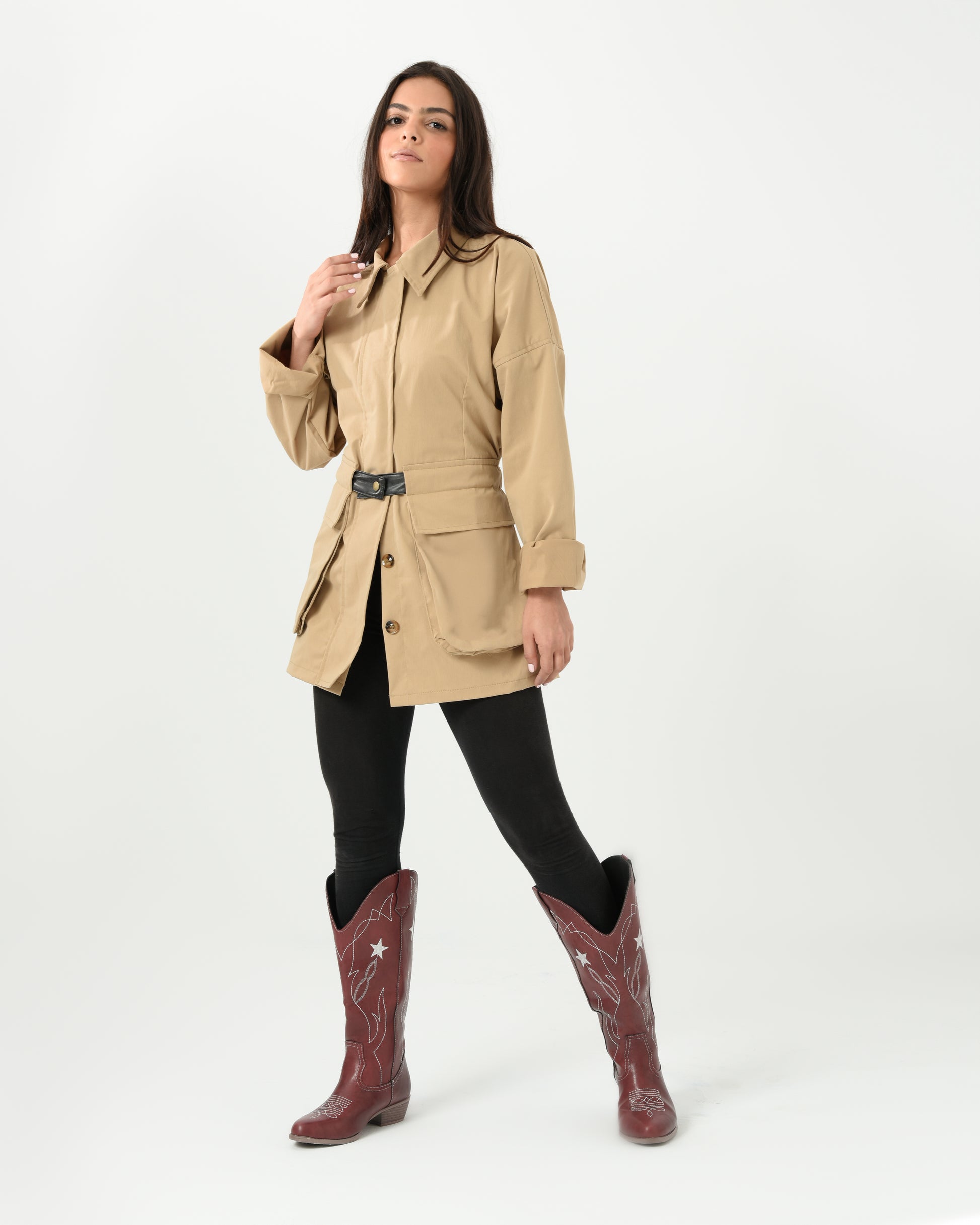 Elevate your everyday style with this frosted belted jacket—where cool meets chic! The soft, textured frosted finish gives off effortless sophistication, while the sleek leather belt cinches your silhouette for a polished, put-together look. Perfect for layering over your favorite pieces, this versatile jacket transitions seamlessly from casual coffee runs to evening outings. The structured design keeps you looking sharp, while the belt detail adds that extra touch of personality. A wardrobe essential that proves you can be both cozy and fabulous at the same time.
